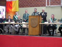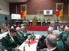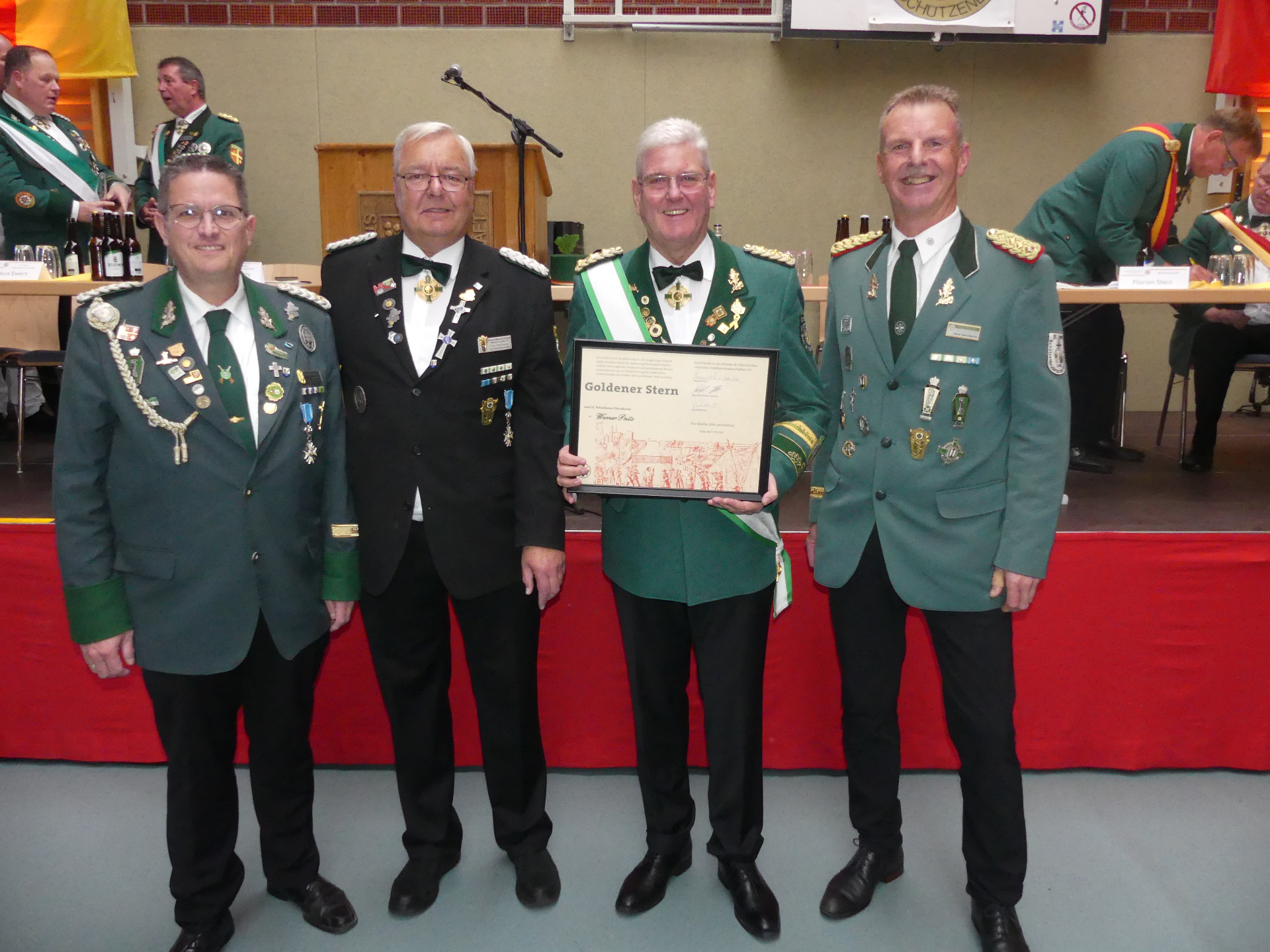 Der Rahmen des Bezirksverbandstages wurde auch genutzt, um einen mehr als verdienten Schützenbruder eine ganz besondere Ehrung zukommen zu lassen: Werner Peitz wurde durch den stellv. Bundesschützenmeister Franz Heinrichsmeier der "Goldene Stern zum Sankt Sebastianus Ehrenkreuz" verliehen.