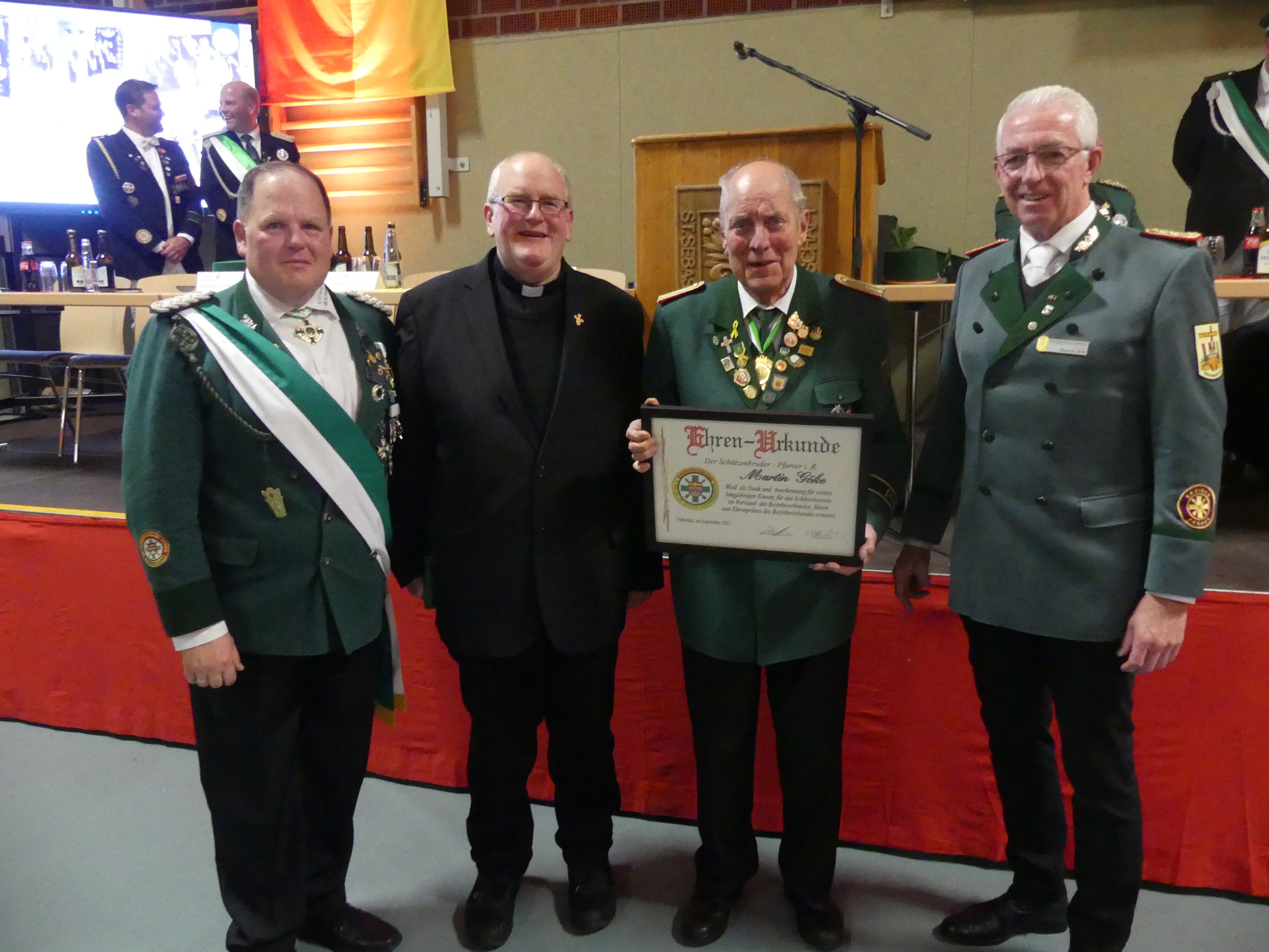 Wir danken Martin ganz herzlich für seine jahrelange Tätigkeit als äußerst nahbarerer Schützenbruder mit einem herzlichen "Vergelt´s Gott" und hoffen, dass du uns noch sehr lange als nun "Ehrenpräses" erhalten bleibst!