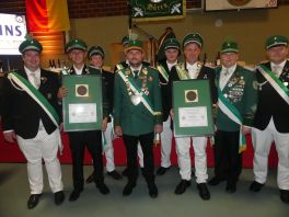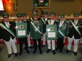 Der Rahmen des Bezirksverbandstages wurde auch genutzt, um einen mehr als verdienten Schützenbruder eine ganz besondere Ehrung zukommen zu lassen: Werner Peitz wurde durch den stellv. Bundesschützenmeister Franz Heinrichsmeier der "Goldene Stern zum Sankt Sebastianus Ehrenkreuz" verliehen.